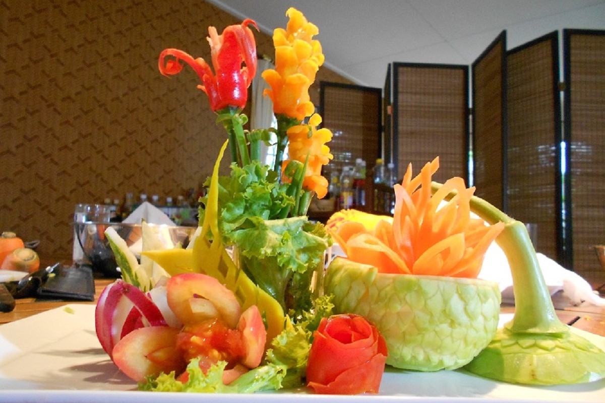 Western vegetable carving can range from simple garnishing to more advanced sculptural pieces. Key carving techniques include: