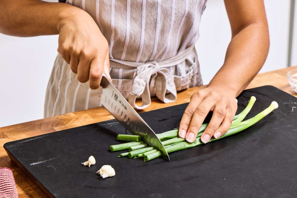 - Coarse chopping and mincing often for salads, dips, and stews.